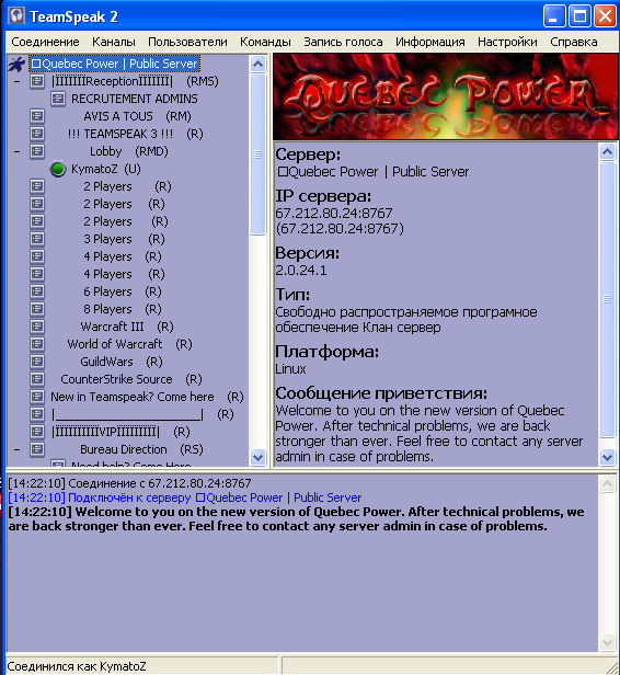 Есле она не создана то создаем ее зделав ПКМ по Quebec Power | Publick Server выбираем "создать канал" ставим пароль "1111" и зовем остальных сокланов собственно говоря это все =)